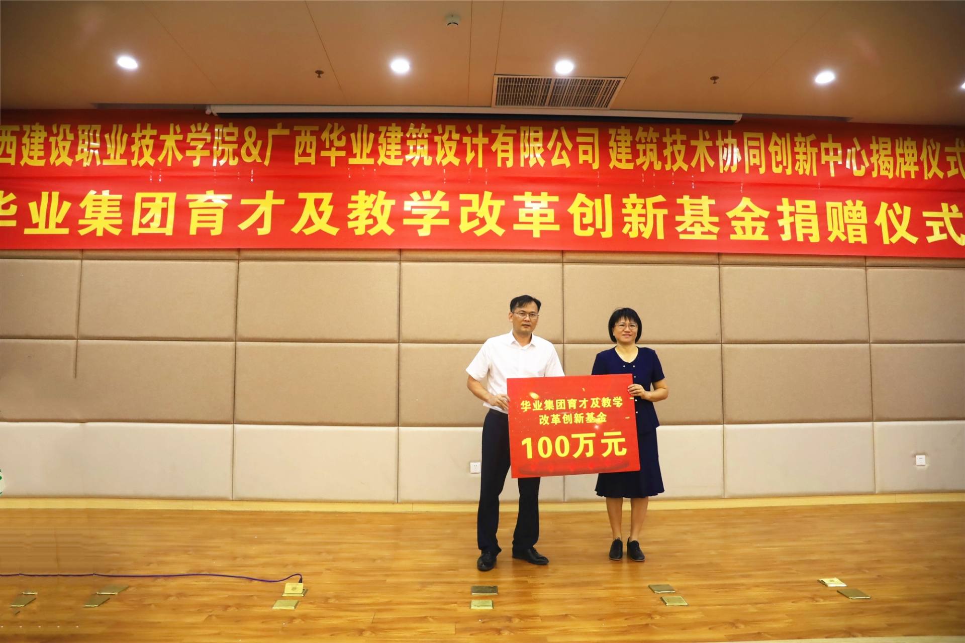 廖人兴副总裁代表环球体育app官网下载集团向广西建筑职业技术学校捐赠100万元