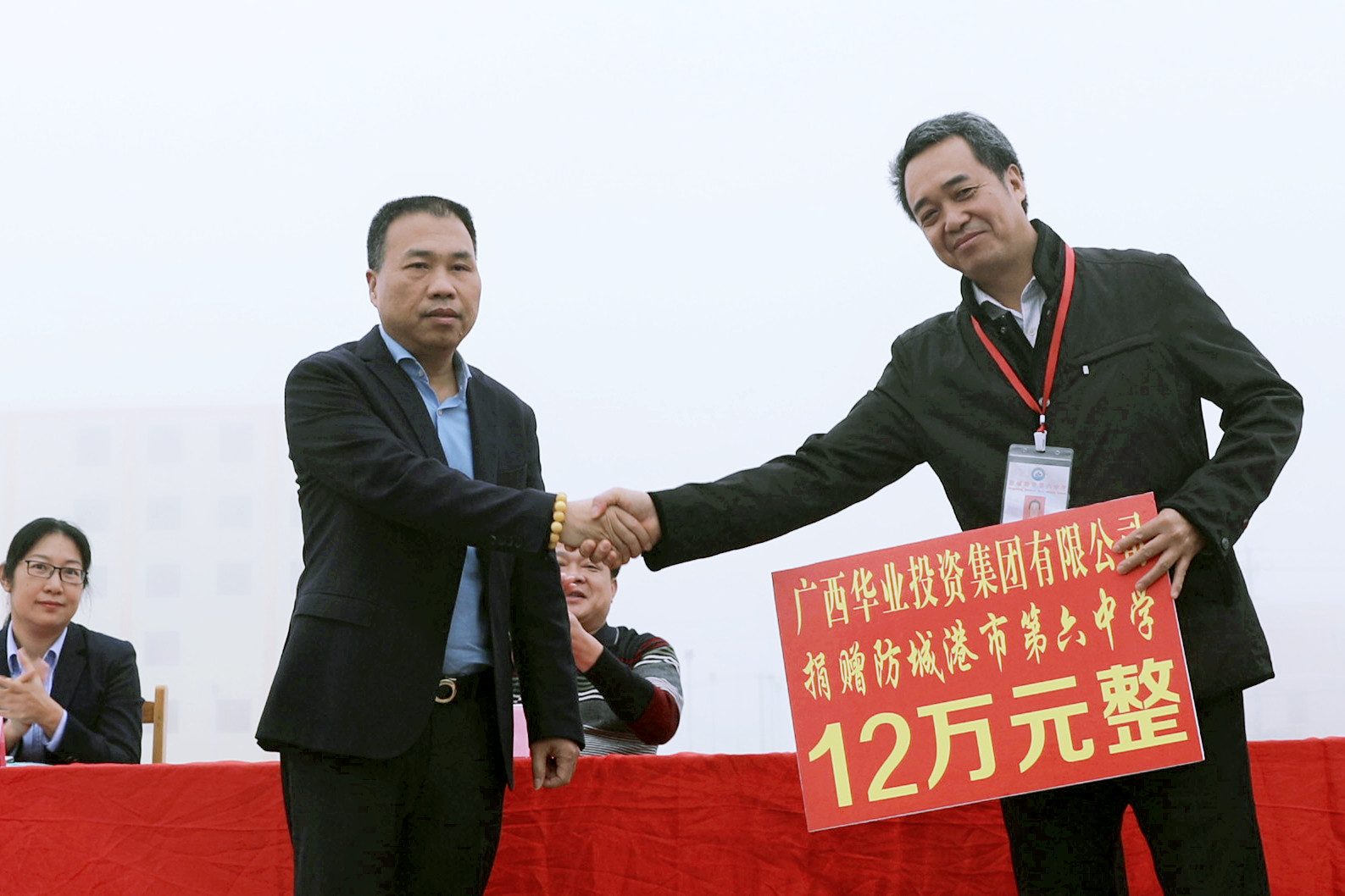 龙其伟总裁代表环球体育app官网下载集团向防城港市六中捐赠环球体育app官网下载奖教学金12万元