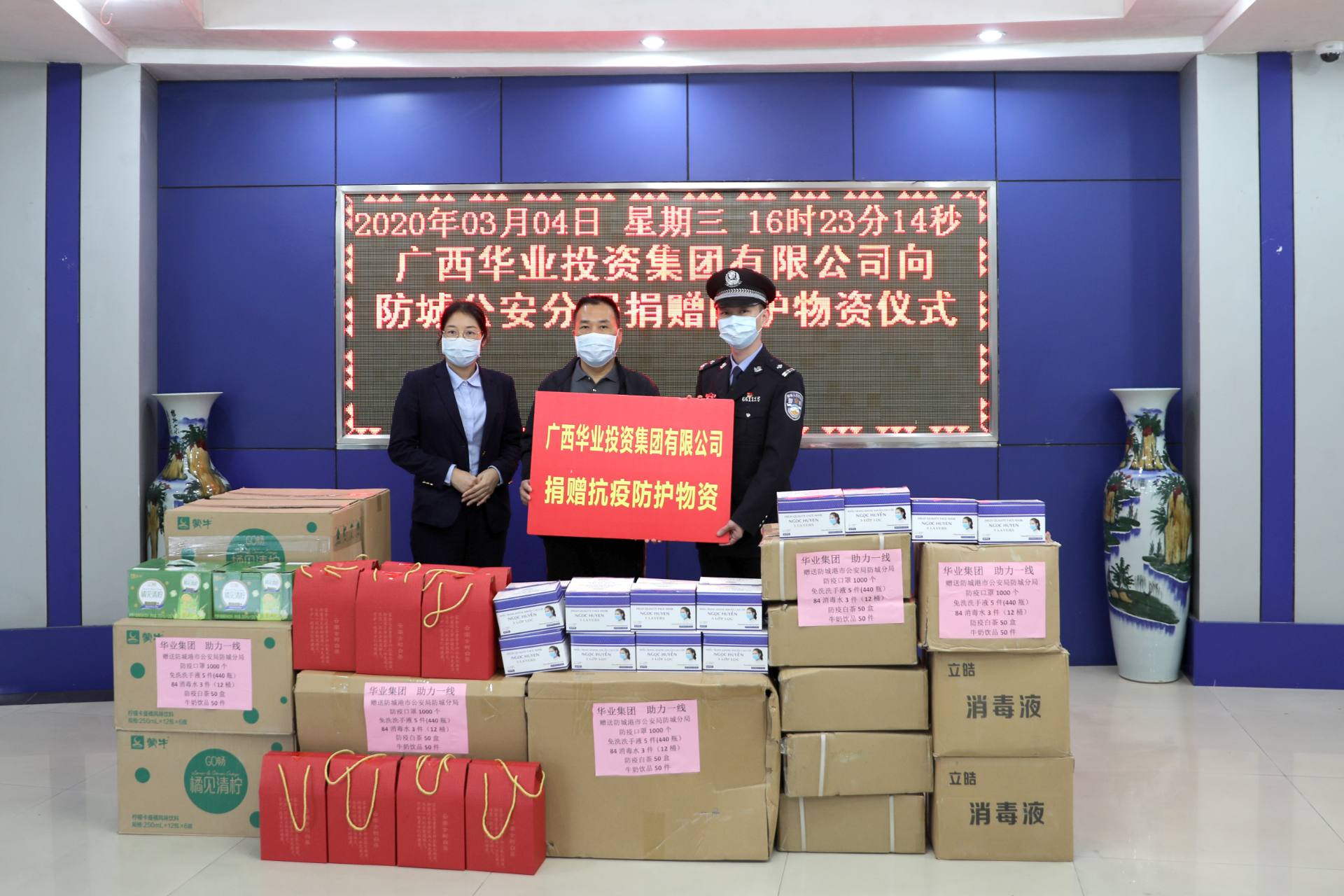 龙其伟总裁、钟丽霞主席代表环球体育app官网下载集团向防城公安分局捐赠抗疫防护物资