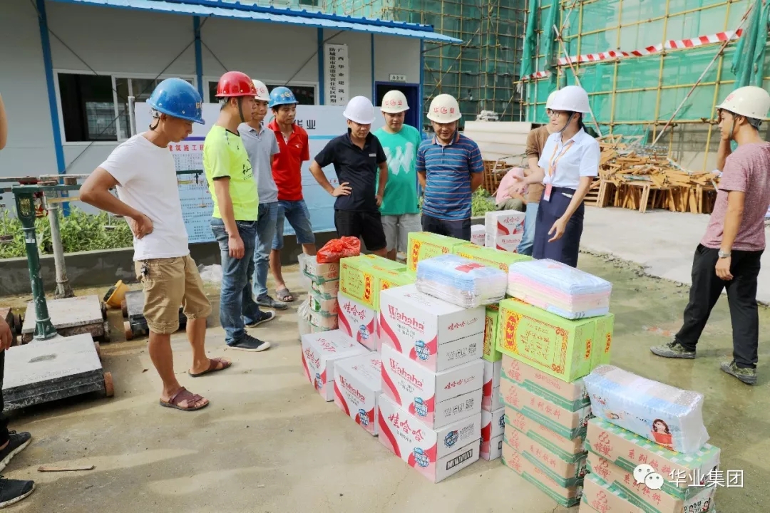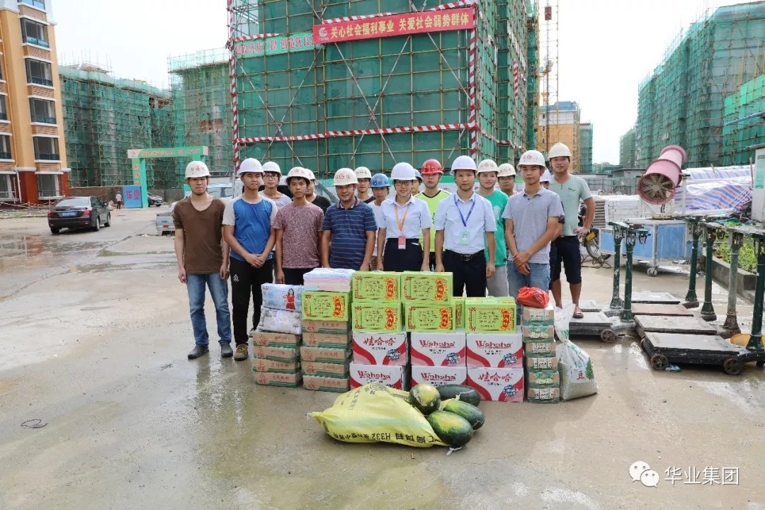 集团工会积极筹措资金,精心采办了矿泉水、凉茶饮料、绿豆、西瓜等消暑物资一大批,由钟丽霞主席带队从8月1日-10日陆续深入环球体育app官网下载城、汽车产业园、北港安置房项目、钦州B1地块项目等施工作业一线看望慰问广大员工,为大家送上了消暑用品,并转达了集团领导的关切之情和美好祝愿!