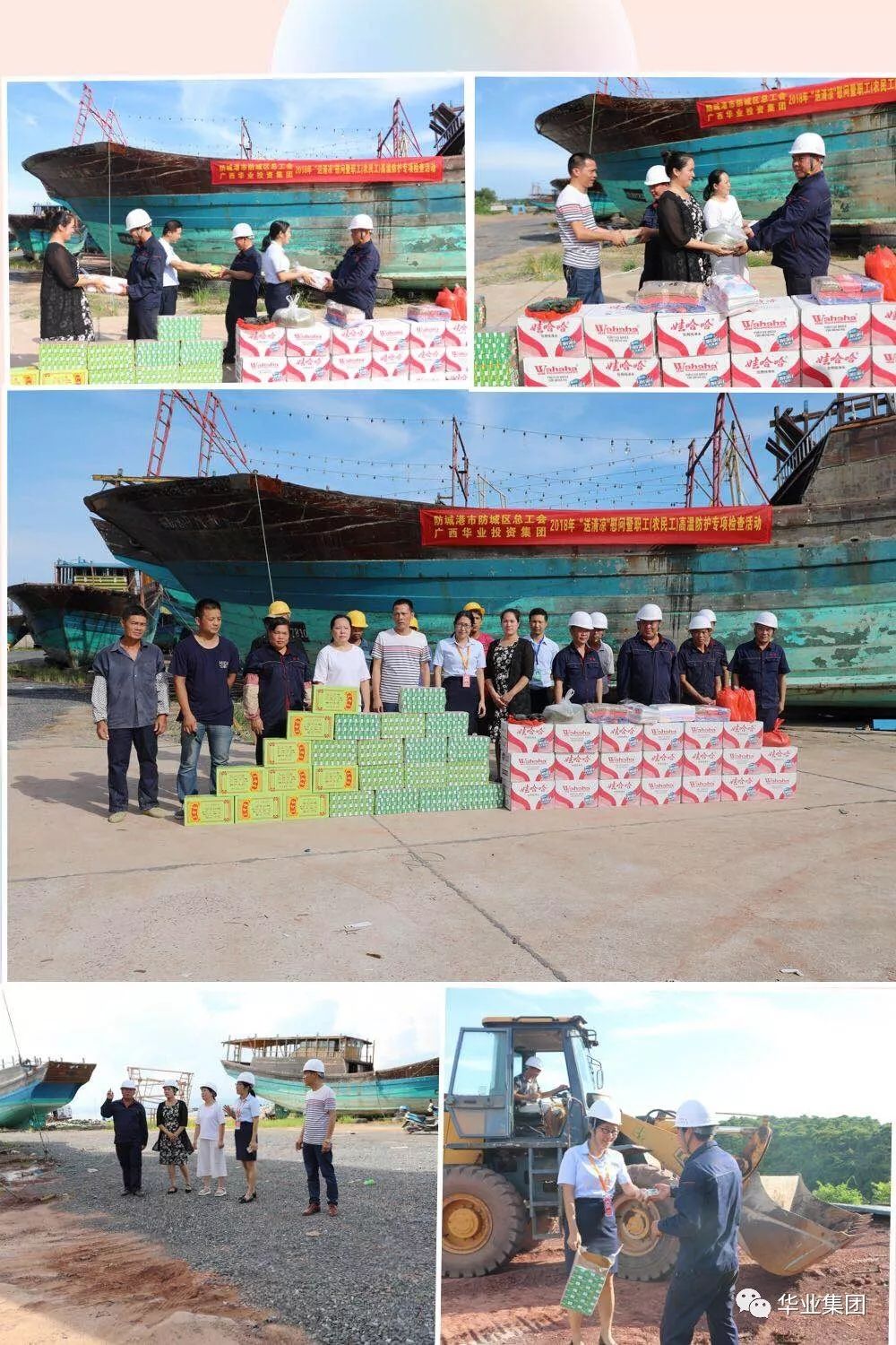 环球体育app官网下载集团夏日送清凉活动产生了良好的社会影响,防城区总工会闻悉消息后,当即决定双方联合组织开展更多的深入工地送清凉活动,让更多的在烈日下辛勤工作的工人朋友们得到关心、爱护和鼓舞。2018年8月7日下午,防城区总工会符皓副主席带领工会干部与环球体育app官网下载集团工会钟丽霞主席一行顶着烈日的熏烤,驱车前往白龙海边防码头为渔光小镇项目施工作业工人送清凉用品,并亲切地慰问了工人朋友们,给予深切的关怀和鼓舞。