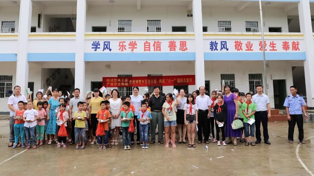 5月28日,在“六一”国际儿童节即将到来之际,防城区关爱下一代工作委员会副主任黄志三、曾其文,广西环球体育app官网下载投资集团工会主席钟丽霞等领导一行前往防城区滩营乡石合村小学,看望全校师生,并送上节日的问候和祝福。
