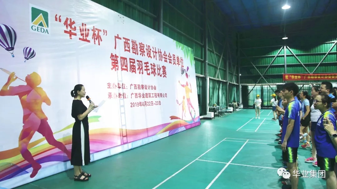 6月22日,由环球体育app官网下载承办的2019年“环球体育app官网下载杯”广西勘探设计协会会员单位第四届羽毛球比赛于防城港环球体育app官网下载城火热开赛。主办方广西勘探设计协会党支部书记、副理事长覃燕娜和常务副秘书长王桂强、工会主席张雁等领导出席开幕式。