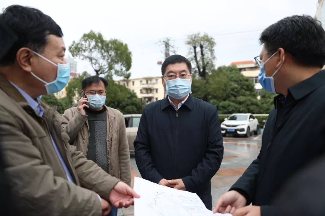 防城港市委书记、市人大常委会主任李延强(右二)到场调研指导