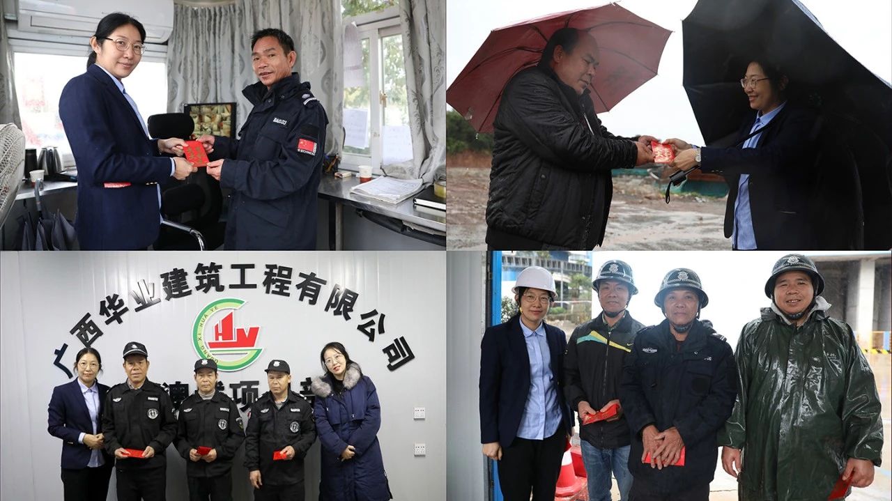 又是一年佳节至,最是情暖岁寒时。2020年1月25日(大年初一),环球体育app官网下载集团龙其伟总裁、工会主席钟丽霞带上了新年礼物及新春红包,深入公司基层及项目工地,为春节值守一线的员工们送去关怀与新春的祝福。