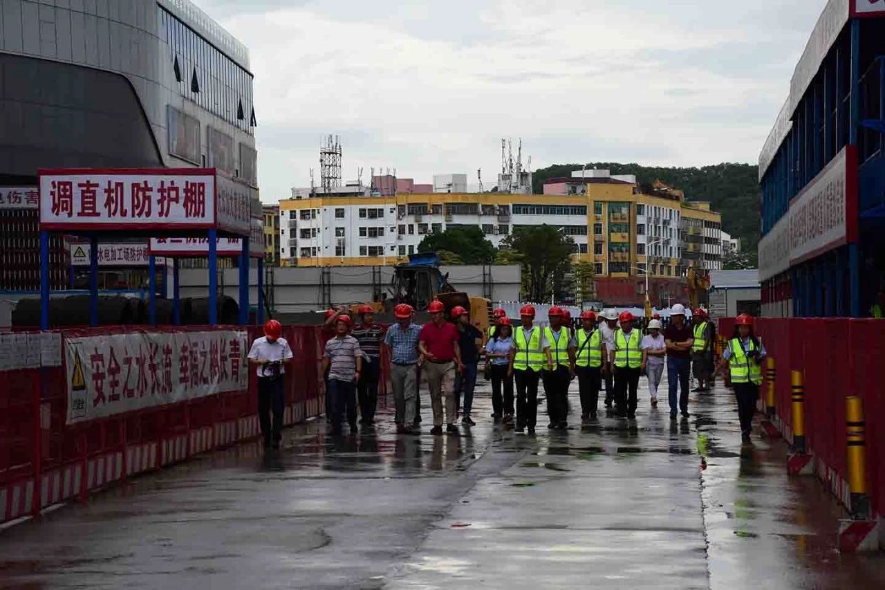 虽然当天天公不作美,但大雨丝毫不影响大家的参观热情。观摩团一行在认真听取各分部分项施工人员的简单介绍后,对项目人车分流通道、门禁系统及实名制信息管理 、建筑物施工外墙围挡、配电房防护、起重设备的现场指挥操作管理等安全生产、文明施工工作留下深刻印象,对现场安全生产、文明施工面貌给予了高度评价,现场严谨的施工管控彰显了项目规范化、标准化、制度化的综合管理水平,非常值得学习借鉴。