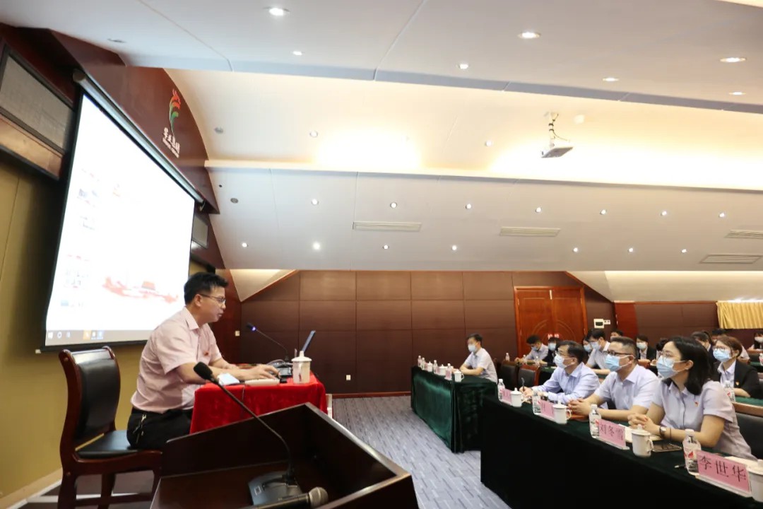 为推动党史学习教育往深里走、往心里走、往实里走,教育引导党员干部群众了解党的光辉历史、感悟党的初心使命、领会党的创新理论、体认党的精神谱系、传承党的红色基因,更加自觉地以习近平新时代中国特色社会主义思想武装头脑,2021年4月30日,防城区委党史学习教育宣讲团走进广西环球体育app官网下载集团开展党史学习教育宣讲会,宣讲团成员、区审计局党组成员、副局长黄德益同志做了《百年初心》的专题主讲。环球体育app官网下载集团党委副书记、副总裁廖人兴,集团副总裁熊昭斐和党员、职工代表四十多人参加了宣讲会。